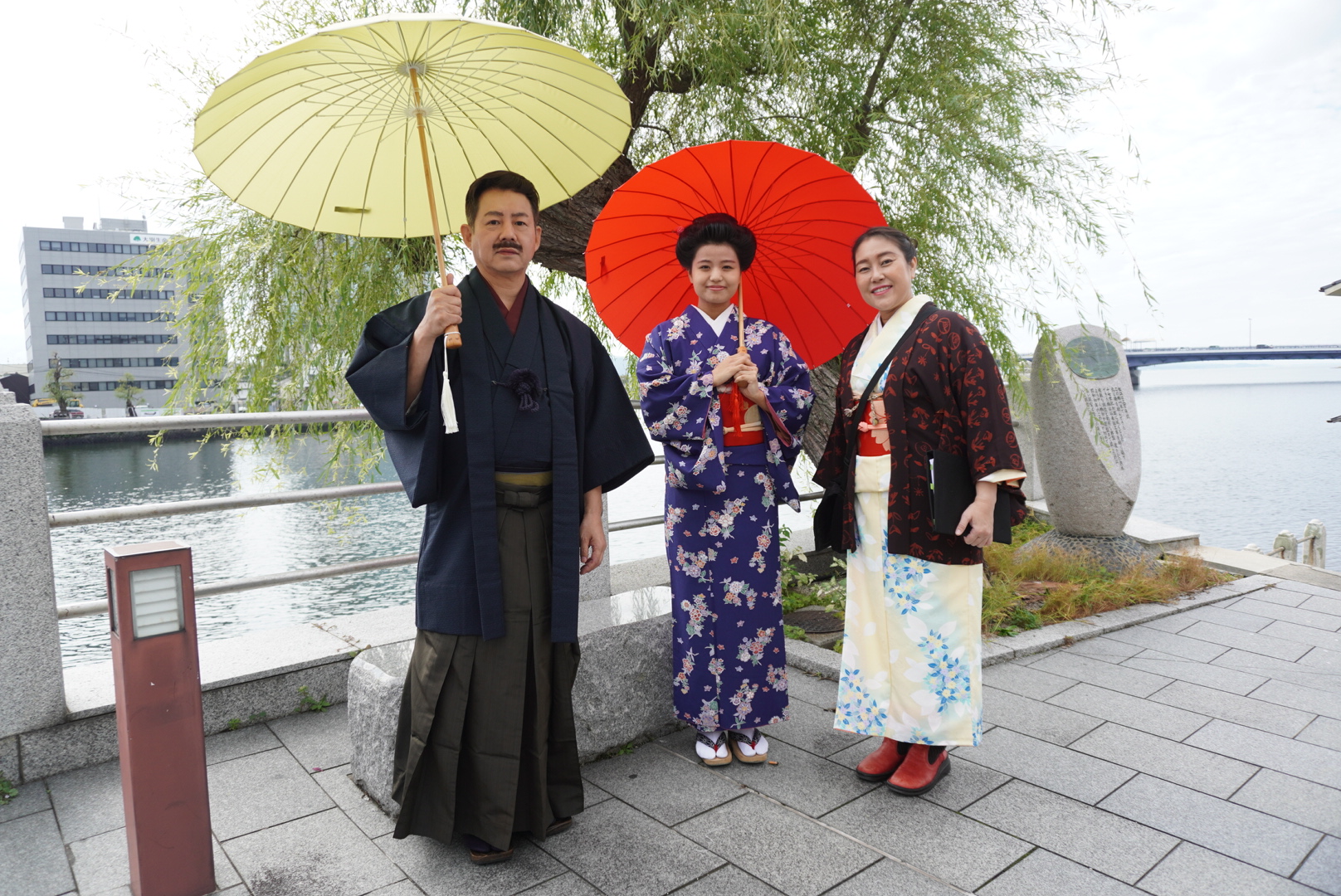 予約不要、役者が扮する小泉八雲とセツを見つけたら、自由にコミュニケーションを楽しむことができます。SNS投稿OK!