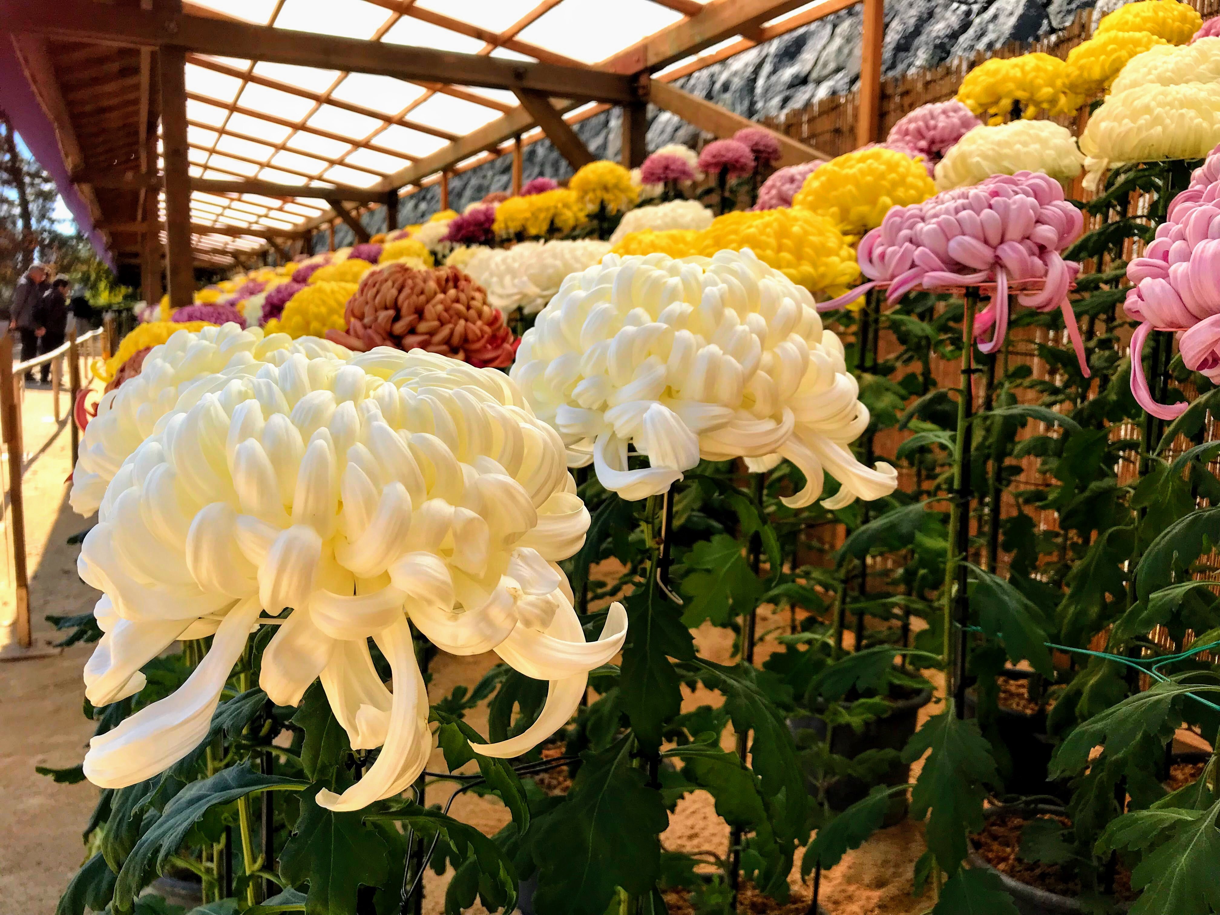 今年で 75 回目を迎える、松江城山公園で開催される菊花展。島根県東部・鳥取県西部の菊愛好家が心を込めて育てた美しい菊の花が約500鉢並び、期間中に開催される審査会では、文部科学大臣賞・島根県知事賞などの賞を選出し表彰します。